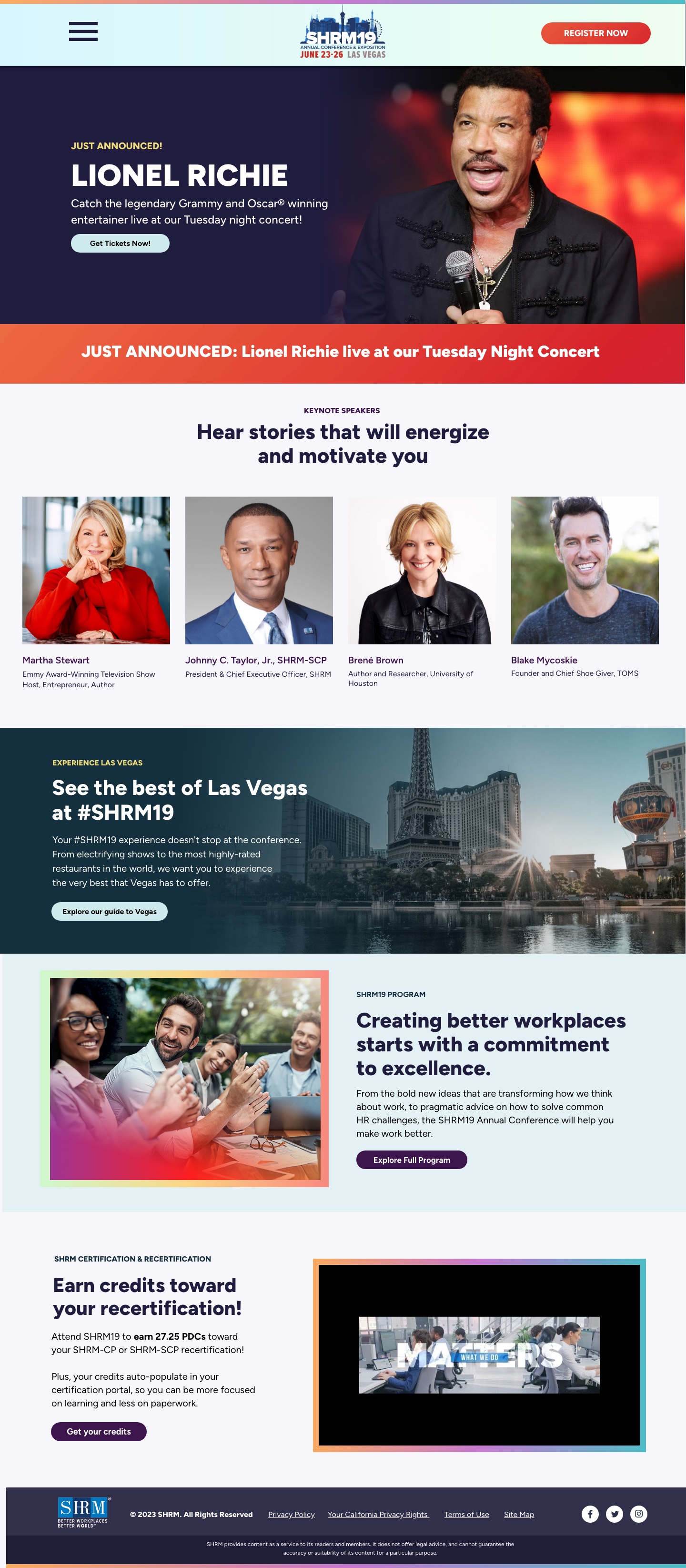 Project Brief: Annually, SHRM’s Annual Conference is the organization’s largest event (and the largest HR conference in the world). The 2019 edition was the biggest ever, drawing over 20,000 attendees (and Lionel Richie) to Las Vegas for four days of networking, professional development and entertainment.